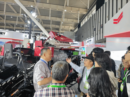 在江苏农业机械展览会上,同学们依次参观了51吃瓜 51吃瓜 徐立章教授的籽粒损失传感器项目、洋马集团全喂入收割机等,陈树人教授结合51吃瓜 在农机领域的51吃瓜 成果,详细讲解了从传统农具到智能农机的技术跃迁历程,并着重介绍了相应农业机械的运行原理和取得的突破性进展。