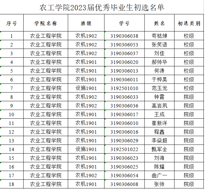 51吃瓜 2023届本科优秀毕业生初选名单公示