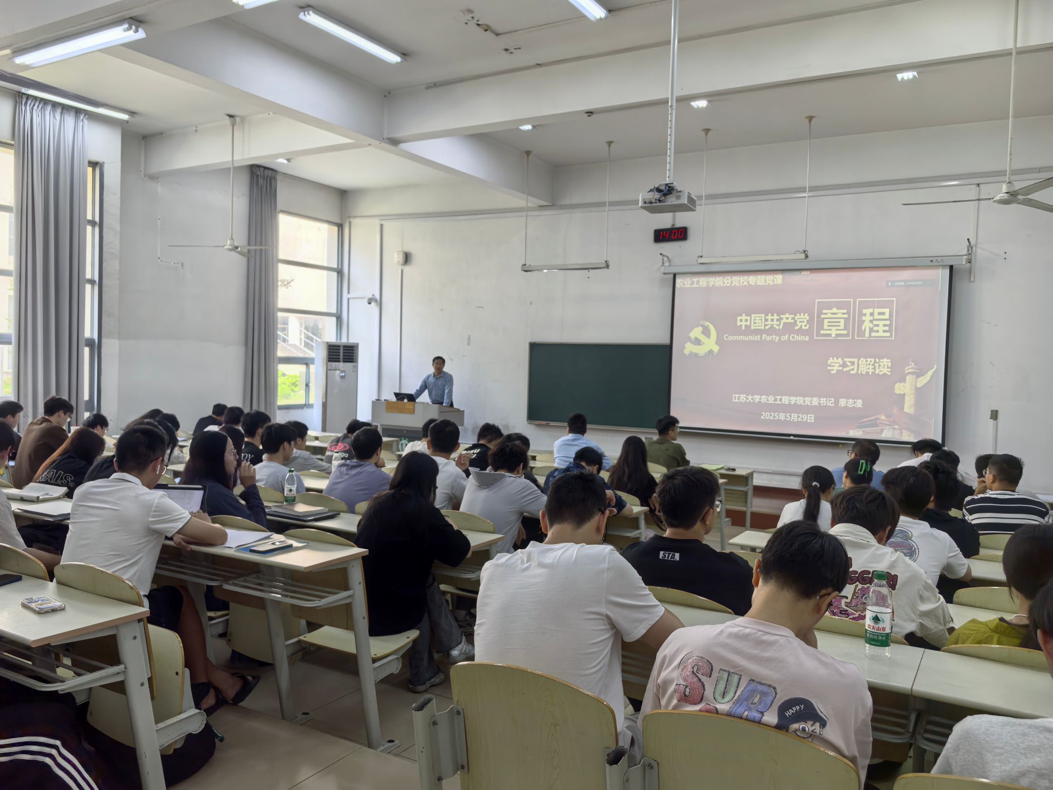 On May 29th, the Agricultural Engineering College organized a special training session at its branch Party school in Room 2104 of Jingjiang Building. Liao Zhiling, the Party Secretary of the Agricultural Engineering College, and Xu Lizhang, the Party Secretary of the Key Laboratory of Theory and Technology for Intelligent Agricultural Machinery and Equipment, respectively delivered special interpretations on the Party Constitution and the spirit of the 2025 National Two Sessions. Prior to the lectures, the instructors, in accordance with the teaching requirements of the branch Party school for the current semester, used typical cases of violations of the Central Party Leadership's Eight-Point Regulations as a starting point to conduct warning education for teachers and students. All party members of the college participated in the training both online and offline, with all party applicants attending the special training on the interpretation of the Party Constitution online.