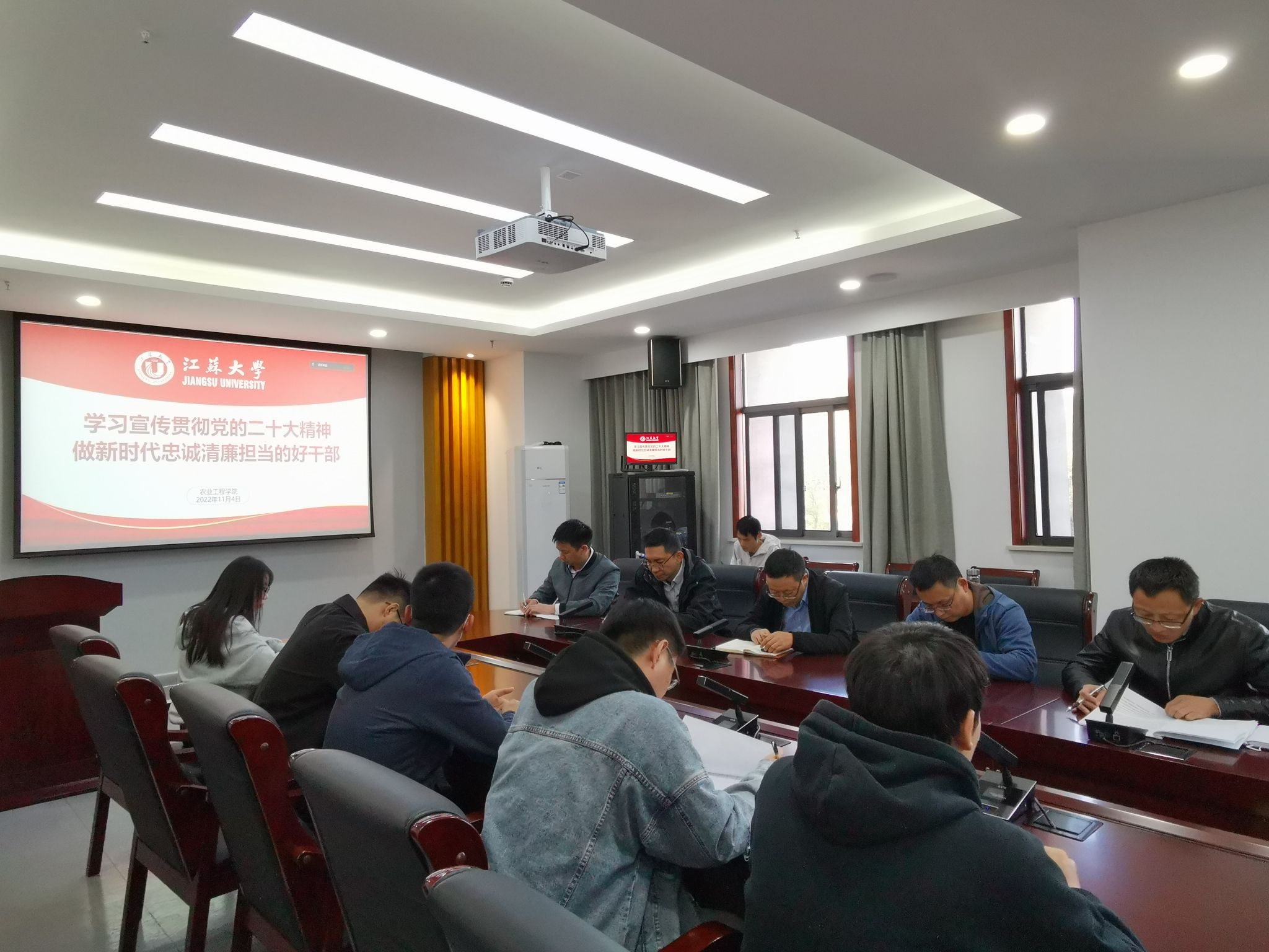 周军结合党的二十大报告学习,带领全体人员深入学习了党中央关于全面从严治党的新部署、新要求。围绕“学习宣传贯彻党的二十大精神 做新时代忠诚清廉担当的好干部”的主题,向与会人员提出三项要求:筑牢理想信念,做好讲政治的表率;强化理论武装,深入学习宣传贯彻党的二十大精神;严肃党内政治生活,把服务师生工作落到实处。